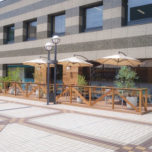 開放感あふれる広々としたウッドデッキのテラス席は、都会にいながらにしてリゾートのような贅沢な雰囲気を満喫できる特等席です♪大型のパラソルを完備しているため、強い日差しを気にすることなく、終日快適にお食事を楽しめます。ぜひ非日常的なリラックスタイムをお過ごしください!